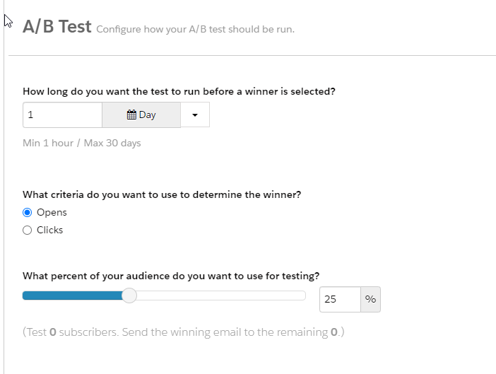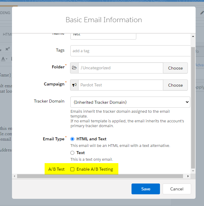 Account Engagement gives you the ability to send two different versions of an email to a small subset of your prospects. Then use that data in order to choose the winning version and send that version to the remainder of the recipient list. This is called: A/B Testing.