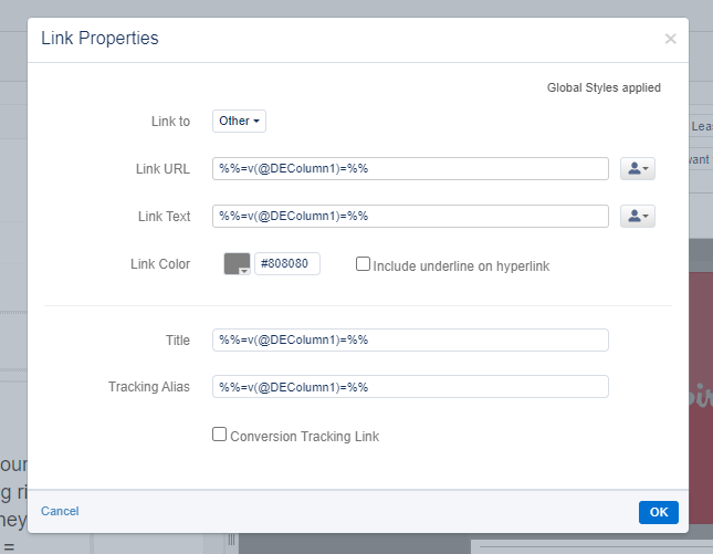 “CTA Link” is the name of the column in the non sendable DE, we’re grabbing the information from